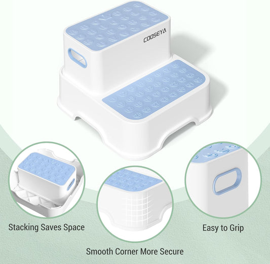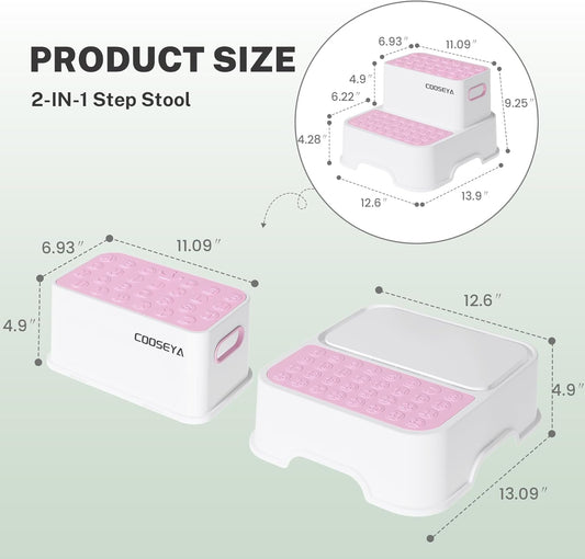 2 Packs Step Stools for Toilet Potty Training of Kids, Toddler Step Stool for Bathroom and Sink, New Braced Force Made Sturdy Premium PP material