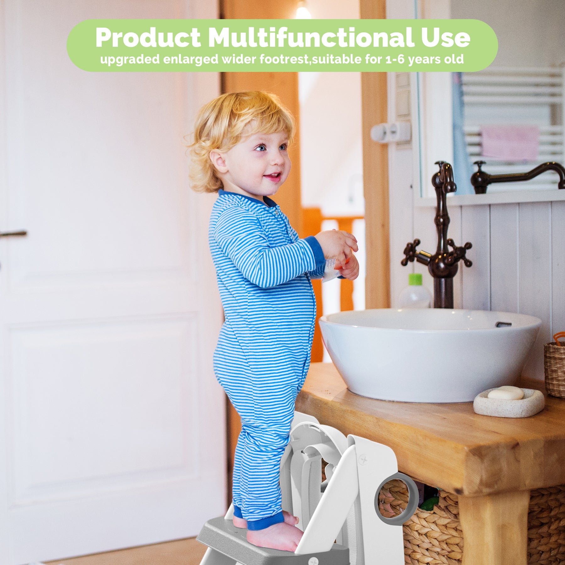 - 🧸【2-IN-1 USAGE】 Our versatile baby toilet training seat doubles as a step stool for kids to access higher spots, allowing your little ones to easily brush their teeth or reach for items. Its lightweight, compact design enables kids to carry it themselves, and the foldable feature ensures effortless storage.