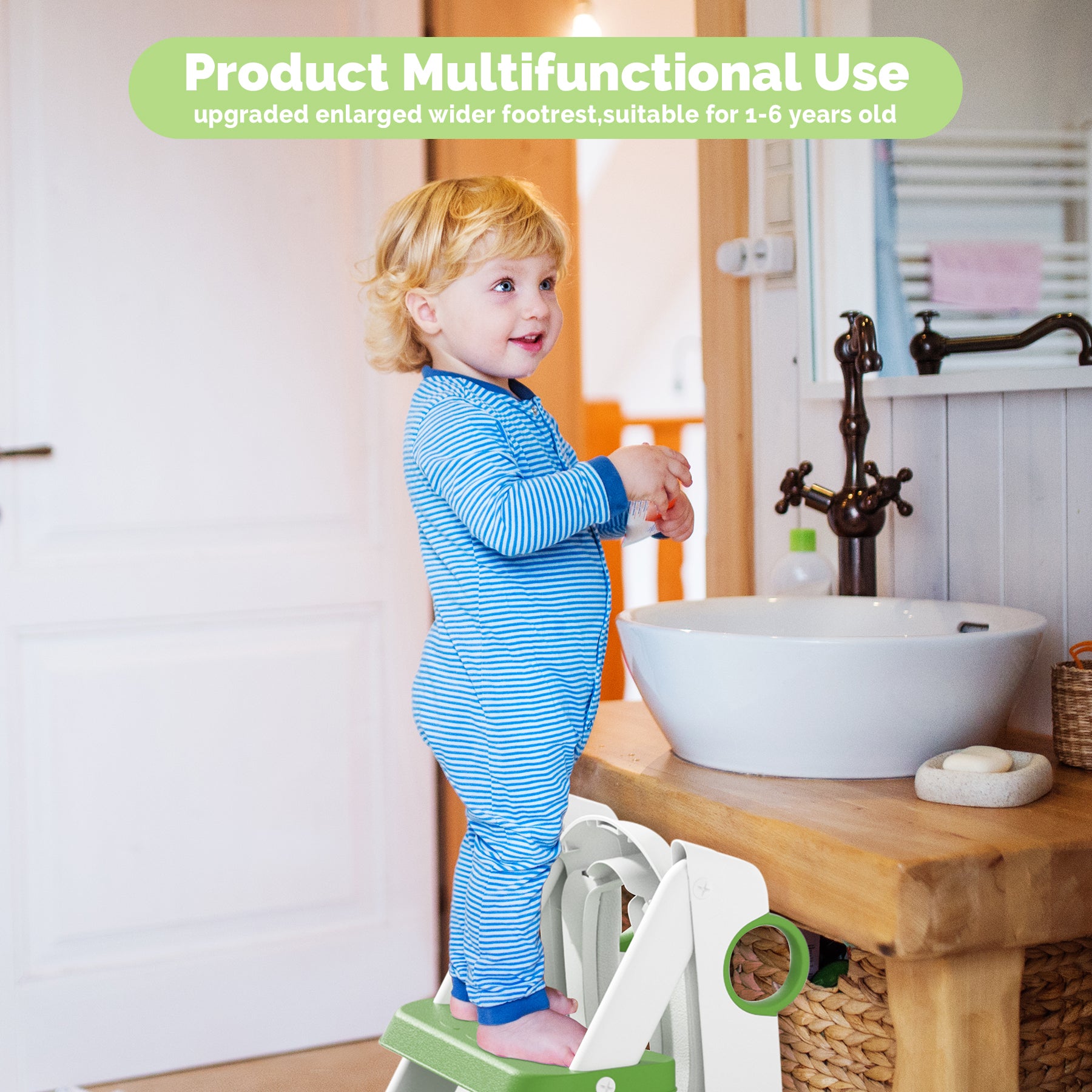 - 🧸【2-in-1 Usage】 Our versatile baby toilet training seat doubles as a step stool for kids to access higher spots, allowing your little ones to easily brush their teeth or reach for items. Its lightweight, compact design enables kids to carry it themselves, and the foldable feature ensures effortless storage.
