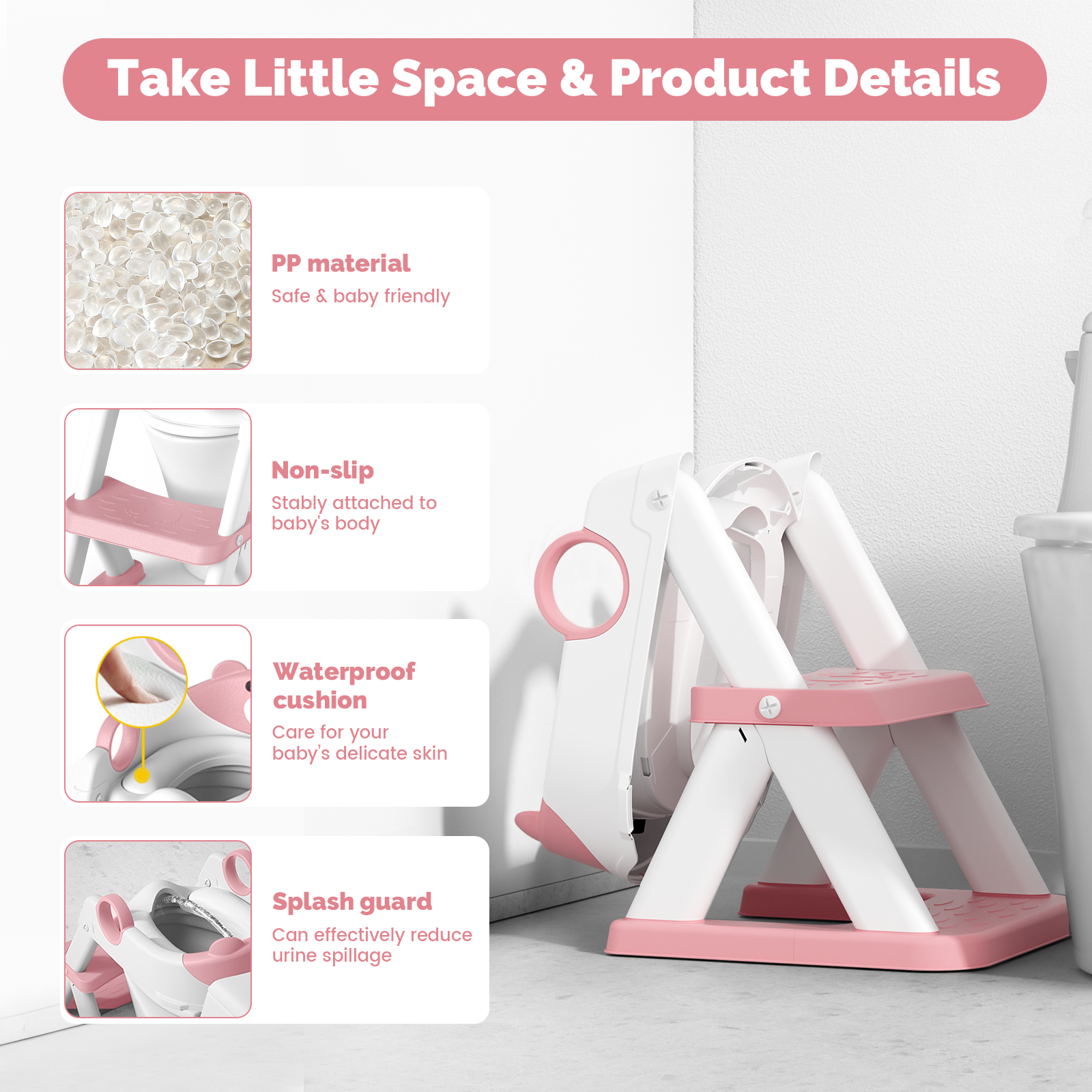- 🧸【SOFT CUSHION】Our potty seat for toddlers with step stool comes with a waterproof PVC seat cushion that feels soft to the touch, providing protection for children's sensitive skin. It also stays comfortable to use during the winter months without feeling cold.