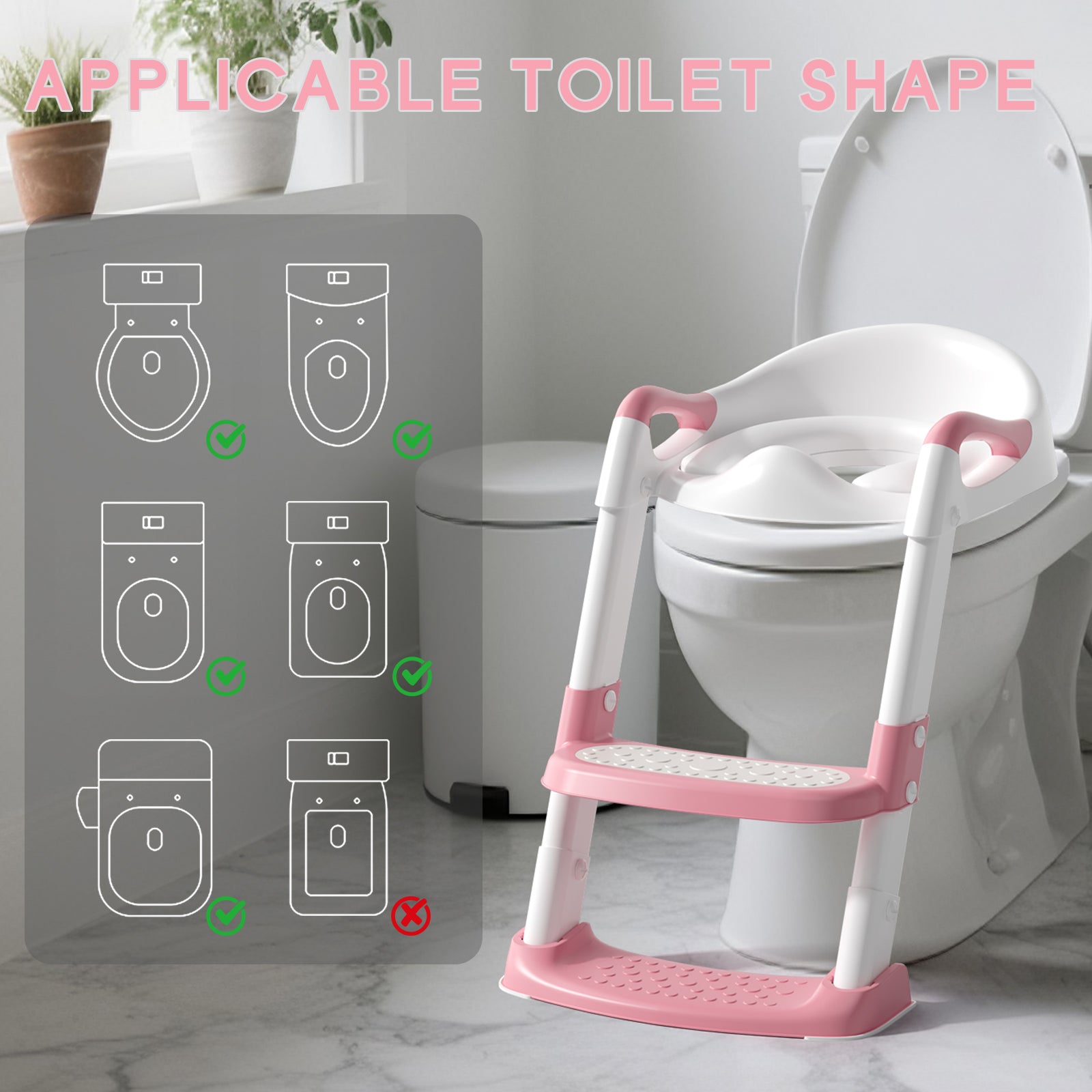 - 【Anti-Slip Design】The TPE non -slip glue pads are installed on both sides of the bottom of the pedal on the toddler toilet seat, which can enhance the grip.A suction cups and non -slip strips are installed under the seat to prevent the seat from shift. The pattern on the soft rubber pedal can increase friction and more comfortable,combined with the handles on both sides of the potty training toilet, your child can climb more safely